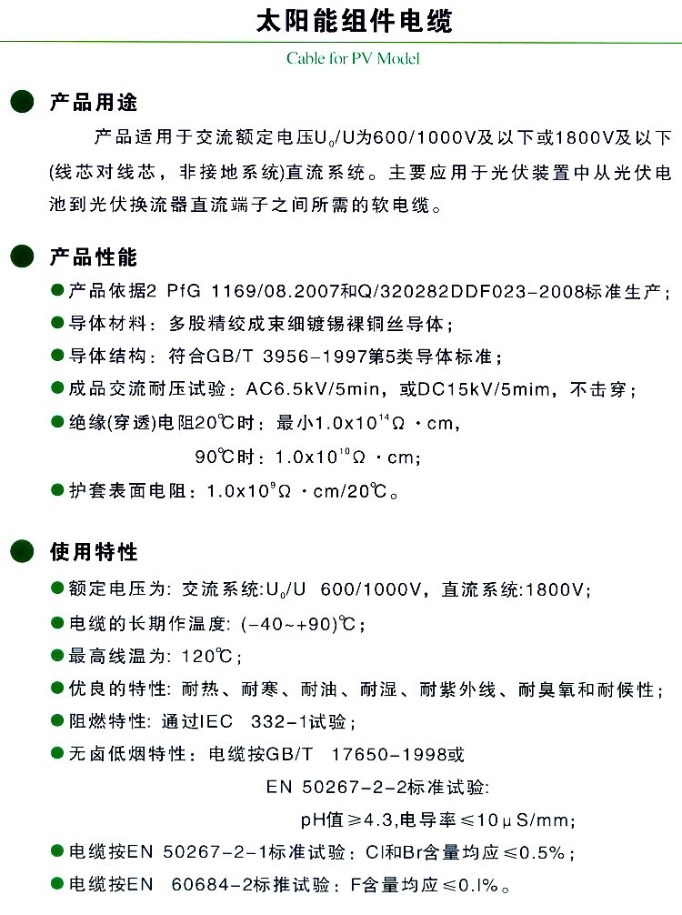 太阳能组件用电缆