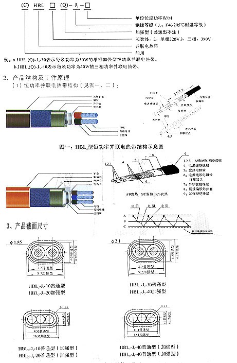 电热带按GB3836.1-2000和GB3836.3-2000即爆炸性环境用防爆电器设备“通用要求”和增安型电器设备要求设计制造。防爆炸等J为“eⅡ T3-T6”,防爆合格证证号CNEX02、433U。产品具有阻燃性,与增安型电器附件配套后,适用于不受外力直接冲击的工厂一区,二区爆炸性气体混合物“T3-T6”组场所用。