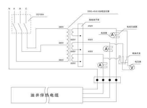电路原理示意图(见图一) | 电伴热加热装置示意图 | |