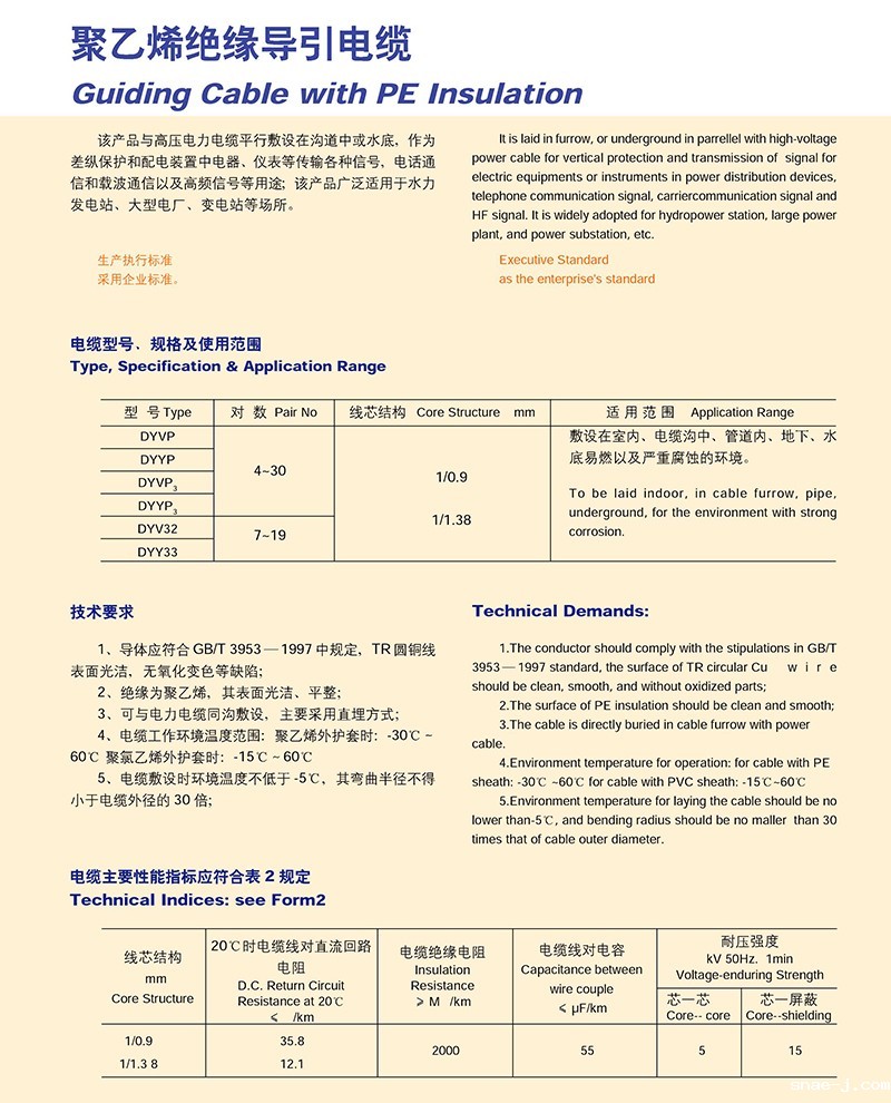 聚乙烯J缘导引电缆