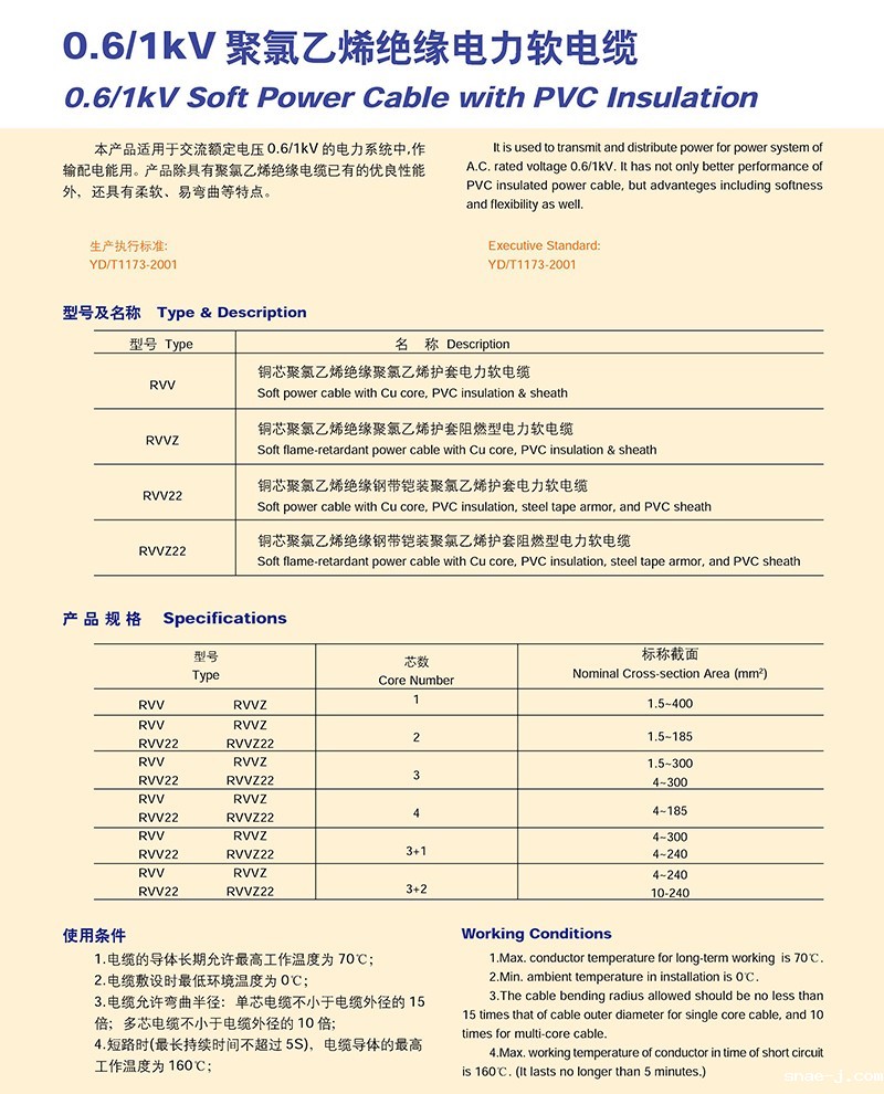 0.6/1KV聚氯乙烯J缘电力软电缆